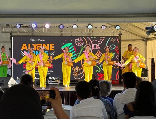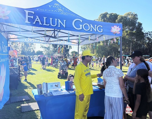 (Minghui.org) 21 मार्च, 2026 की दोपहर को पश्चिमी ऑस्ट्रेलिया के स्वान शहर के बीचबोरो जिले में आयोजित 15वें "अल्टोन कम्स अलाइव" उत्सव में फालुन दाफा के अभ्यासियों ने भाग लिया। कई आगंतुकों ने सत्य , करुणा और सहनशीलता के फालुन दाफा सिद्धांतों के प्रति अपनी सराहना व्यक्त की और काफी लोगों ने अभ्यास सीखने की इच्छा जताई।